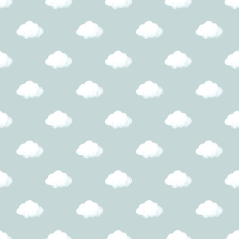 Hladká béžová vliesová tapeta na stenu s bielymi obláčikmi na modrom pozadí.