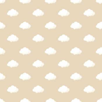 Hladká béžová vliesová tapeta na stenu s bielymi obláčikmi na béžovom pozadí.