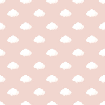 Hladká béžová vliesová tapeta na stenu s bielymi obláčikmi na ružovom podklade.