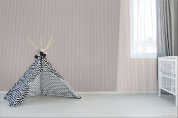 Vliesová tapeta na stenu s jemnou štruktúrou, ružovo-biela, pruhy so šírkou 6 mm.