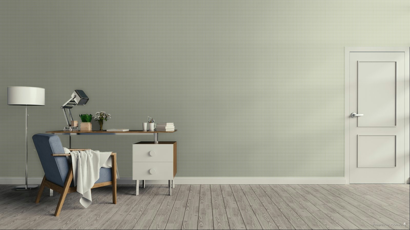Vláknitá tapeta na stenu s jemnou textilnou štruktúrou, imitácia kockovanej látky, zelená, biela.