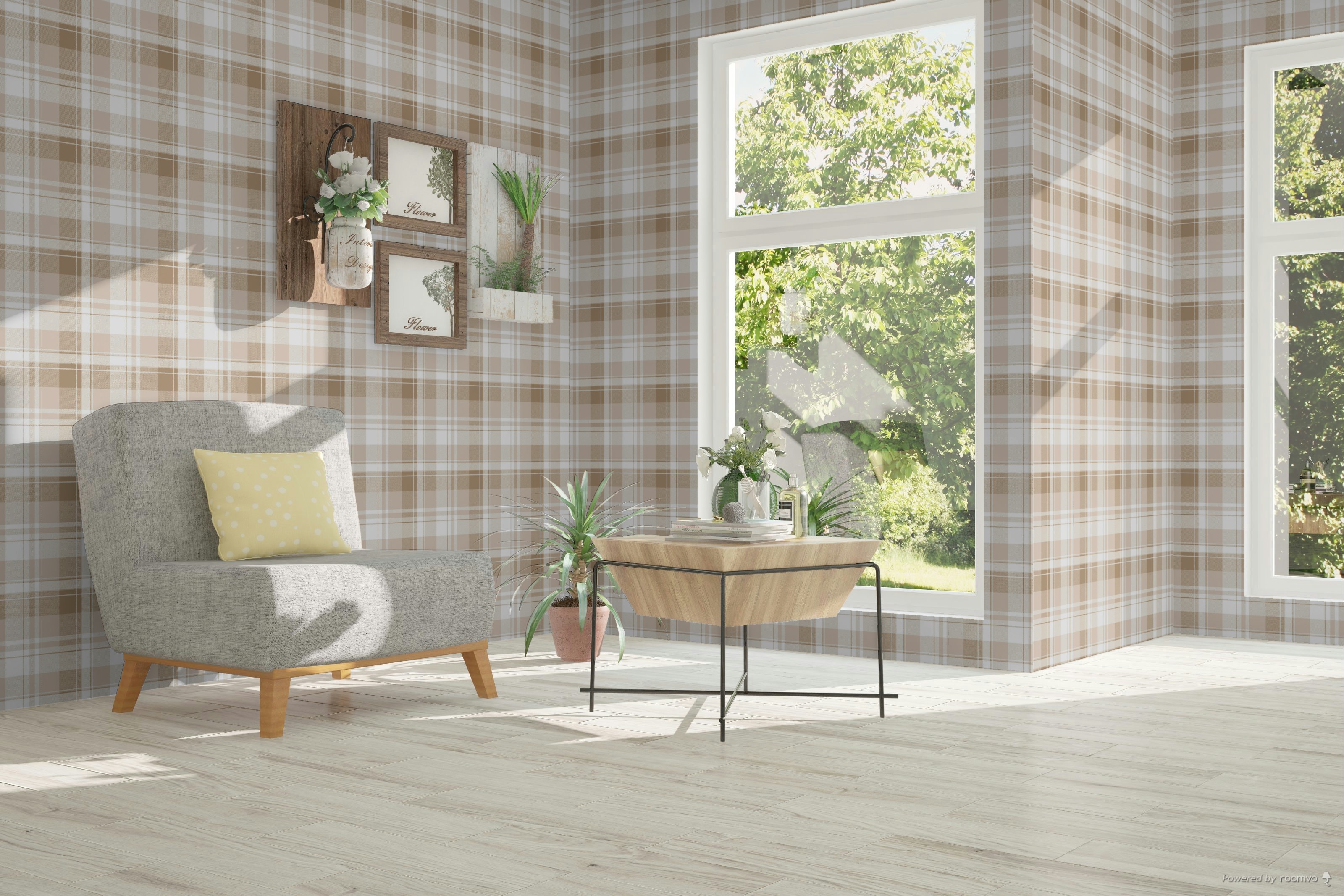 Vliesová tapeta na stenu, jemná textilná štruktúra, imitácia kockovanej látky v odtieňoch hnedej, béžovej a bielej.