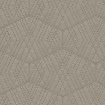 Strieborná vliesová tapeta na stenu s geometrickým vzorom a medenými linkami.