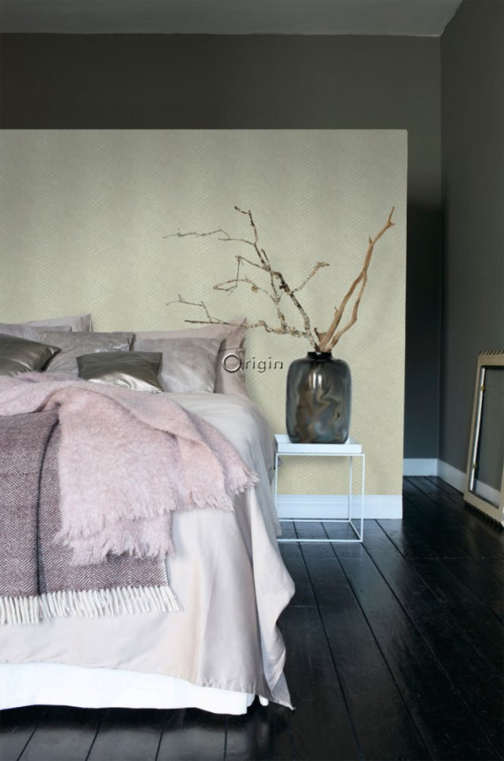 Vliesová tapeta na stenu sivozelená, imitácia hadej kože.