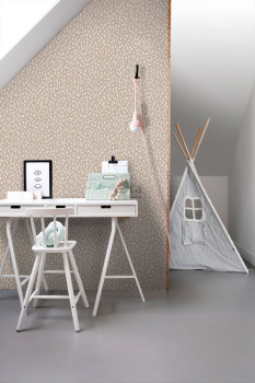 Vliesová hnedá tapeta s bielymi nepravidelnými oválmi 139255, Forest Friends, Esta