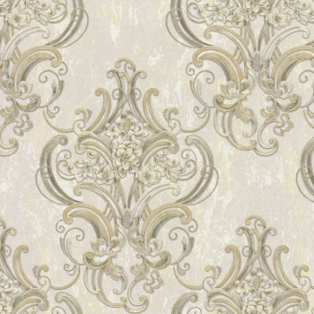 Béžová zlatá luxusná vliesová tapeta s výrazným ornamentálnym vzorom.