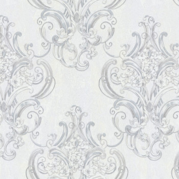 Svetlosivá strieborná luxusná vliesová tapeta s výrazným ornamentálnym vzorom.
