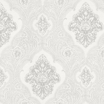 Krémovo strieborná luxusná vliesová tapeta s výrazným ornamentálnym vzorom.