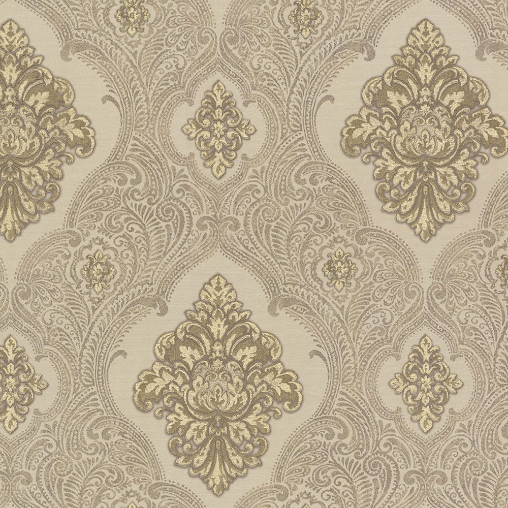 Zlatá luxusná vliesová tapeta s výrazným ornamentálnym vzorom.