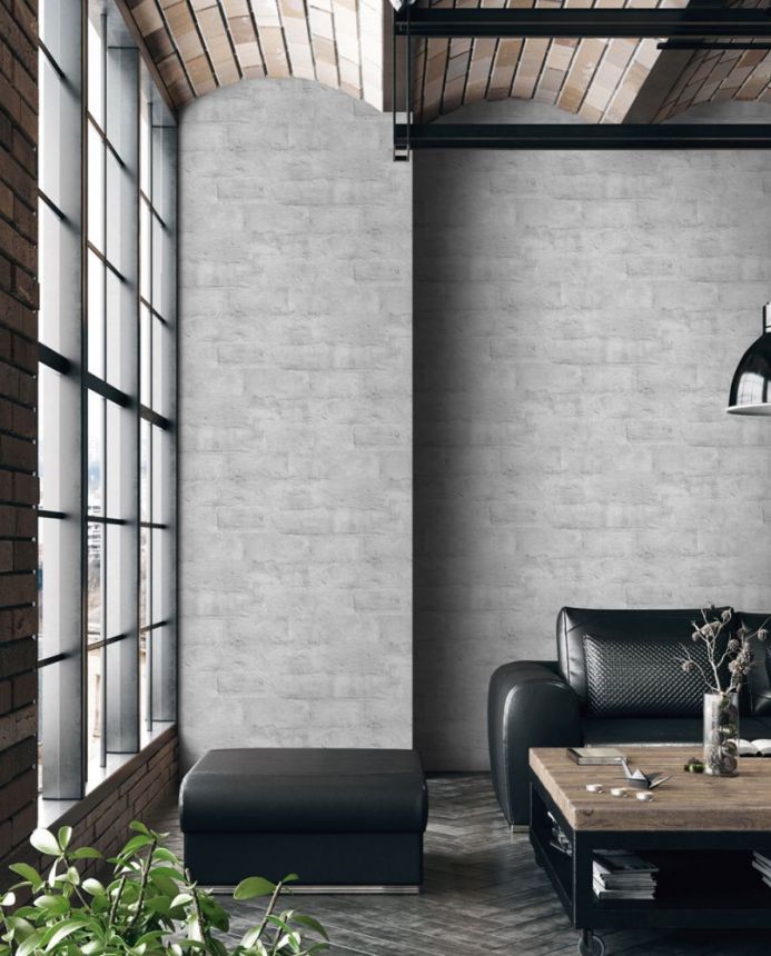 Vliesová sivá umývateľná tapeta na stenu tehly, tehlová stena - M53009, Loft, Ugépa