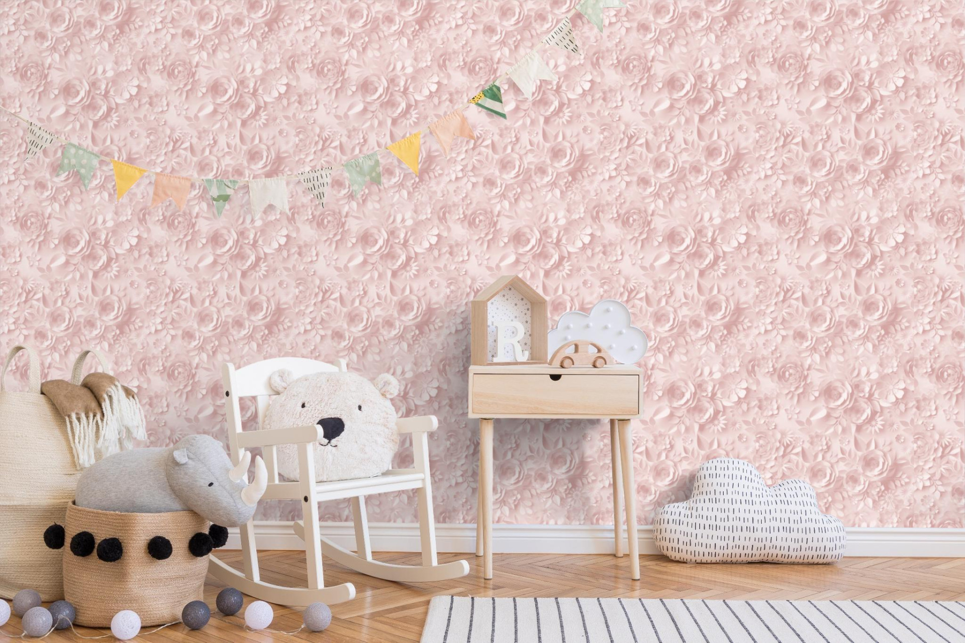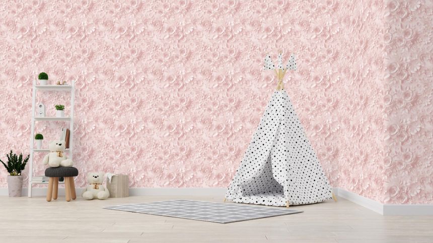 Kvetinová vliesová ružová tapeta s 3D priestorovým efektom.