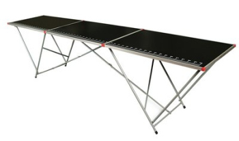Tapetovací a univerzálny stôl pre domácich majstrov s robustnou konštrukciou, 3 mm silnou pracovnou doskou v čiernom prevedení. Kovový rámový profil s plastovými rohovými spojkami, s merítkom pre presné rezanie