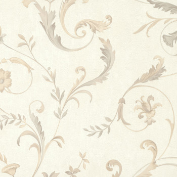 Luxusná vliesová tapeta s rastlinnými ornamentmi na jemnom štukovom podklade v béžovej farbe.