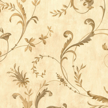 Luxusná vliesová tapeta s rastlinnými ornamentmi na jemnom štukovom podklade v béžovej farbe.
