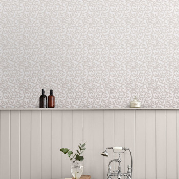 Vliesová tapeta so svetlohnedými listami na bielom hladkom pozadí vnesie do interiéru príjemnú atmosféru.