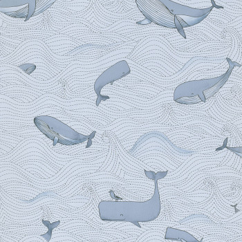 Modrá vliesová detská tapeta s veľrybami 220732, Doodleedo, BN Walls