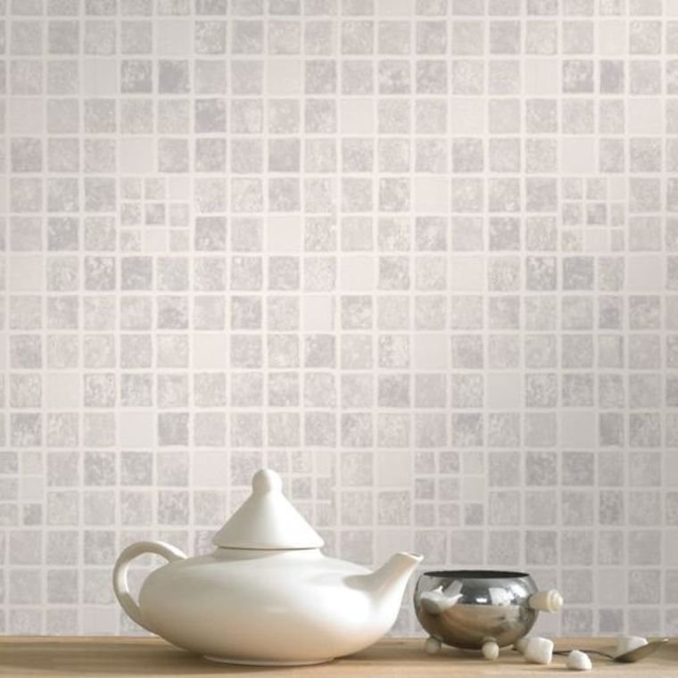 Béžová tapeta so sivými odleskami, imitácia mozaiky a obkladov