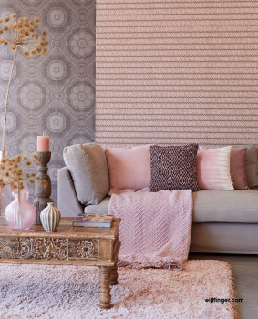 Elegantný, decentný vzor vytvára dojem tkaniny. V odtieňoch hnedej v kombinácii s ružovou a jemným metalickým leskom dodá vášmu interiéru útulnosť.