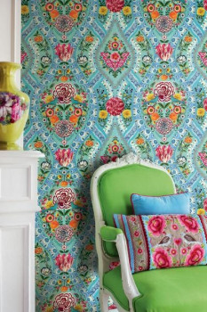 2 dílná pestrá tapeta s motivem květin a ptáčků.