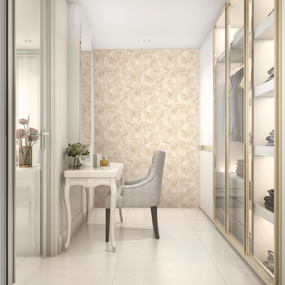 • Tapety, ktoré zvládnu všetko. Pevný vliesový podklad zabezpečí jednoduché lepenie aj odstránenie, zatiaľ čo vinylový povrch dodá vysokú odolnosť voči oderu a vlhkosti. Skvelá voľba do chodieb, kuchýň alebo obývačiek, kde sú steny skutočne namáhané. Veľké plus? Jednoduchá údržba – stačí pretrieť vlhkou handričkou. Ako na to krok za krokom nájdete v našom návode na tapetovanie.