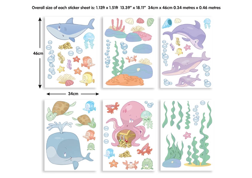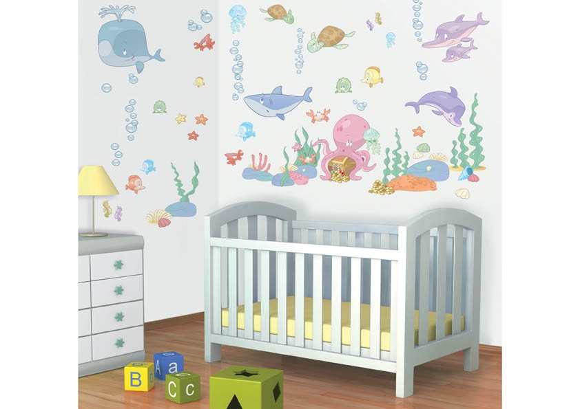 Preskúmajte oceán s našimi 93 Walltastic samolepkami Baby mora. Plávajte s delfínmi a nájdite poklad. Jednoducho odlúpnite a nalepte! Vaša izba nikdy nevypadla tak dobre!